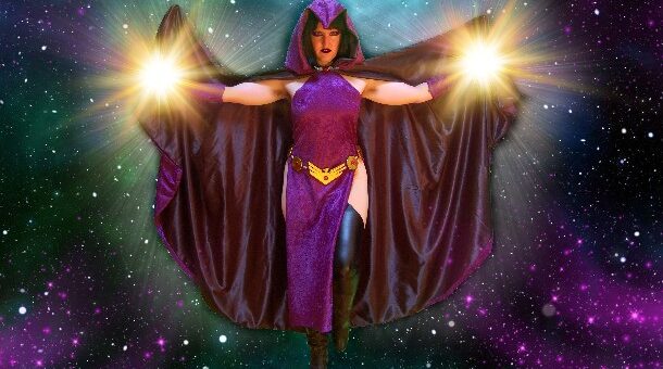 A little cardboard and some gold foil will get you a bright, shiny belt for a DIY Raven costume.